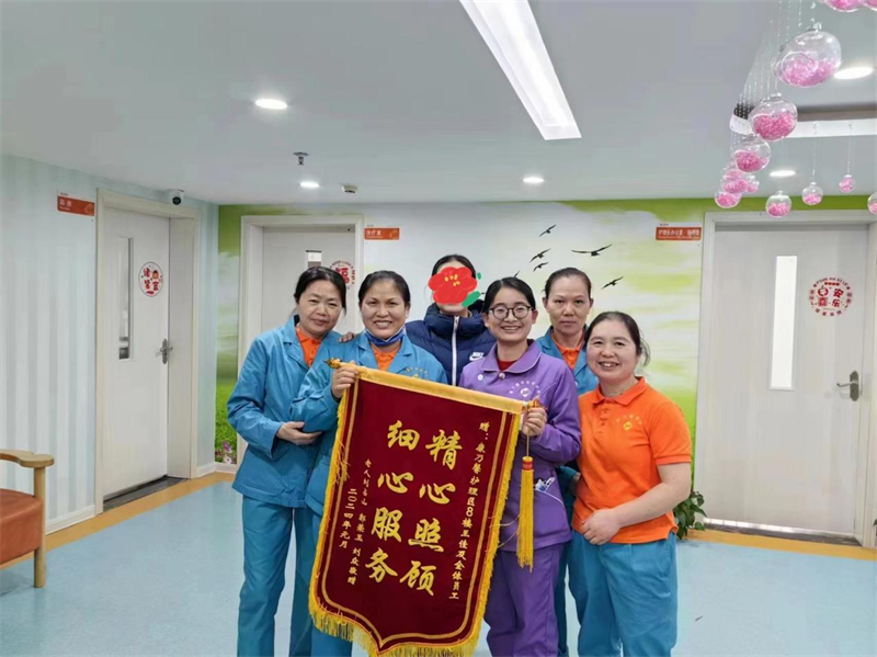 二、用心耕耘,花开不负。作为一名共产党员,作为一名养老护理员,她始终带领团队秉承着“至诚至爱,孝行天下”的宗旨为老人服务,所管理的区域连续多年取得护理质量排名第一的好成绩,有效护理投诉控制为“零”,护理团队更是获得家属、老人的一致肯定,其锦旗、书信表扬20余次,家属更是以“尊老敬老,亲如家人”表达了对她带领团队工作的高度认可。
