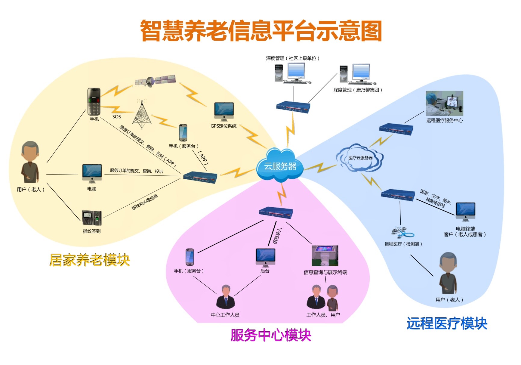 康乃馨智慧养老信息平台“以社区为依托,老龄人群为服务对象,企事业服务机构为网点,信息化平台为支撑”,建立全方位的智慧养老服务体系。真正做到“让老年人舒心、安心;让子女们放心、省心”,从而推动家庭和谐、社区和谐、社会和谐,推动“居家为基础、社区为依托、机构为补充、医养相结合”的中国特色养老服务体系建设。