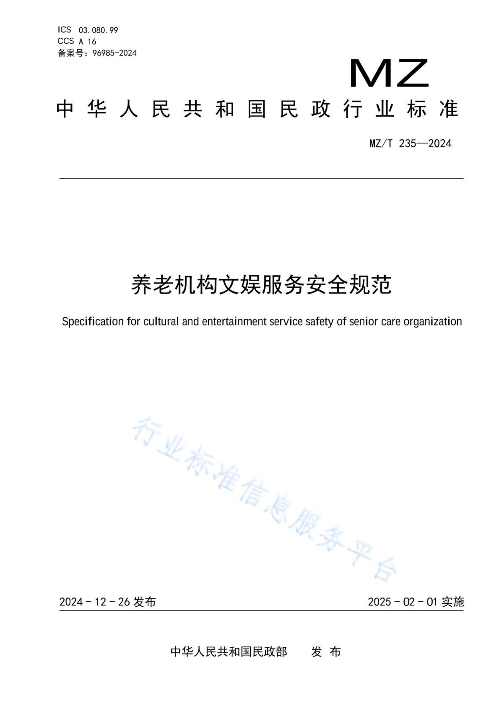 上一篇:MZ-T 234-2024 家庭养老床位服务基本规范