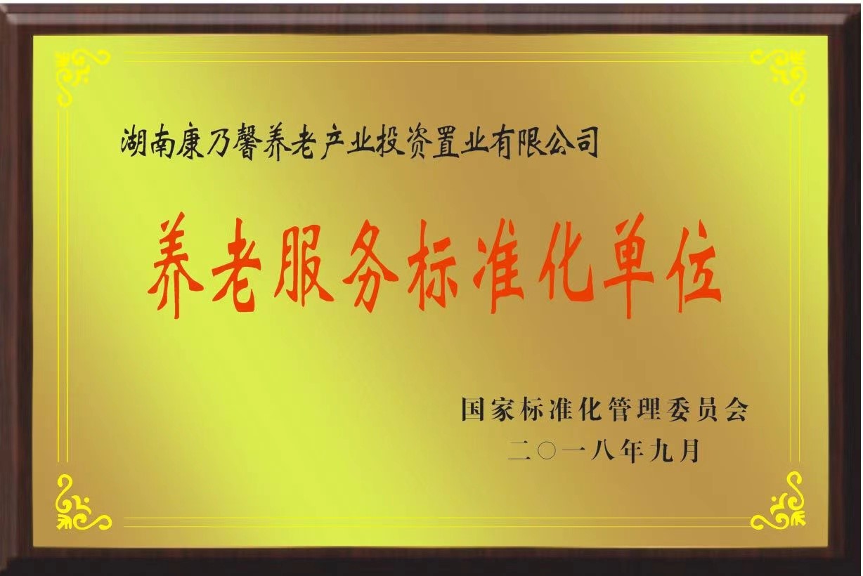 2018年9月,康乃馨公司以96.8分的高分通过了国家级养老服务业标准化试点终期评估,成为湖南省唯一一家国家级养老服务标准化企业。